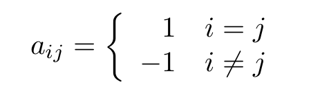假设我们通过多次将类别分成两个集合来设计二元分类器集合。编码矩阵 A 代表分割方式:矩阵第 i 行代表在第 j 列使用-1/+1 来分隔第 i 个二元分类器,也就是说第 j 个类别标签被转换成用于训练的-1/+1 和代表完全被排除的 0。