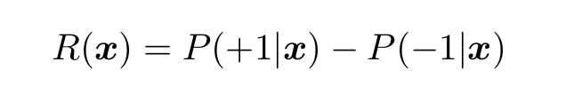 大多数二元分类器的结果不是返回两个整数,而是一个连续的决策函数。条件概率的差值可以作为决策函数的一种方便的形式: