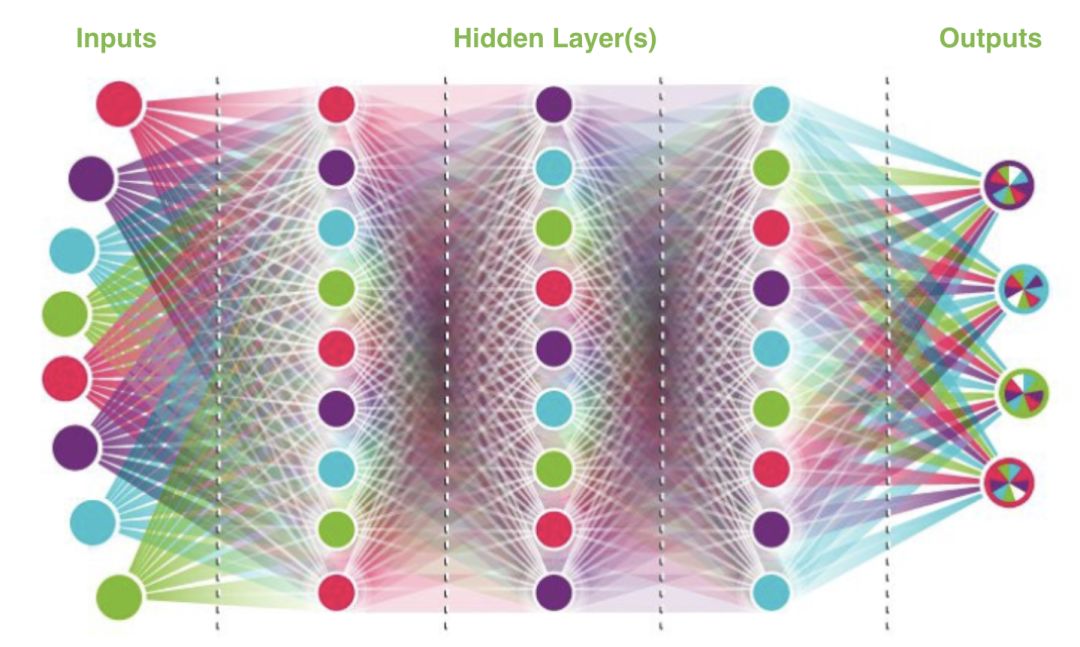 世代神经网络的结构与标准神经网络的结构相同。它从一定数量的输入节点开始,然后输入到一个或多个隐藏层,最终提供一个输出。下面是一个很好的可视化示例:
