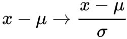 接着,我们考虑缩放变换,即,这里的 σ 是一个跟 x 大小一样的向量,而除法则是逐位相除。这导致: