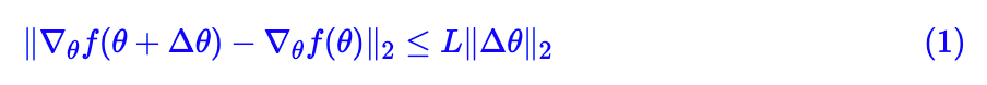 假设函数 f(θ) 的梯度满足 Lipschitz 约束( L 约束),即存在常数 L 使得下述恒成立: