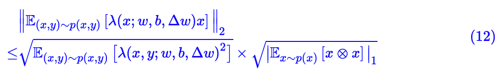 将圆括号部分记为 λ(x,y;w,b,Δw),根据前面的讨论,它被约束在某个范围之内,这部分依然是平稳项,既然如此,我们不妨假设它天然满足 L 约束,即: