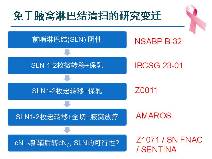 图4:腋窝淋巴结免于清扫的临床试验变迁简史