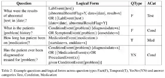 在以往的研究中,基于临床记录的emrQA问答数据集(2018)被提出,通过一个半自动的问题生成过程,这个数据集涵盖接近1M的问答对以及问题-逻辑结构对。