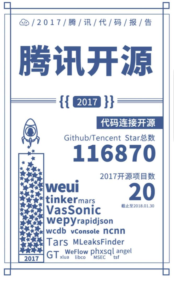 腾讯近日发布了 2017 年度代码报告,对过去一年腾讯的研发数据进行了统计,涵盖代码、开发者、语言等基础数据。据报告所述,截止 2017 年: