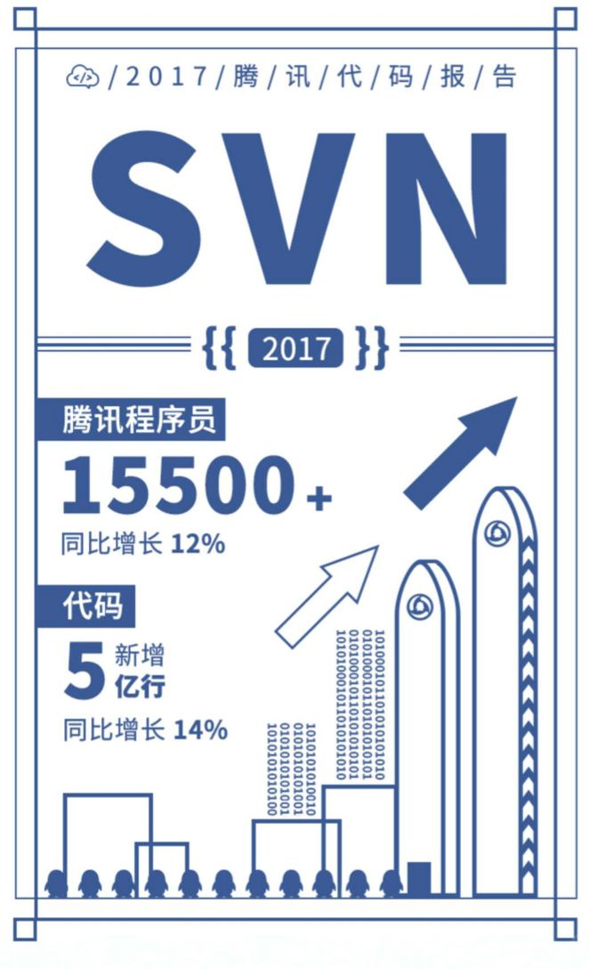 腾讯程序员总数为 15500+,全年新增代码 5 亿行;