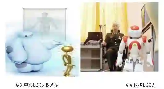 以上列举的难点仅仅是类脑智能探索道路上的少数障碍物,真正实现的一天还距离我们十分遥远。近年来,世界各国都相继对这一领域投入了大量精力研究。2013年6月,美国公布了“推进创新神经技术脑研究计划”(简称“BRAIN”),旨在探索人脑构造、理解人脑工作原理。而在同年初,欧盟委员会也宣布“人脑工程”(简称“HBP”),主要任务是通过模型方式再现人脑工作;2014年9月,日本启动了大脑研究计划。2016年,中国全面启动了脑科学计划。该计划主要有两个研究方向:倾向于医学的大脑揭秘、脑部病变研究,以及类脑智能的技术开发。目前我国已取得了一些喜人的成绩,如复旦大学开发出一种能够“望、闻、问、切”的中医机器人(图3)——“中医一号”;百度公司研发的智能围棋系统Bingo,在大规模实战中战胜了两名业余5段棋手;国防科技大学利用人脑电波指挥机器人行动(图4),可以说这类“脑控机器人”从一定程度上实现了我们在科幻大片中常见的用人脑直接控制机器人的震撼场景。