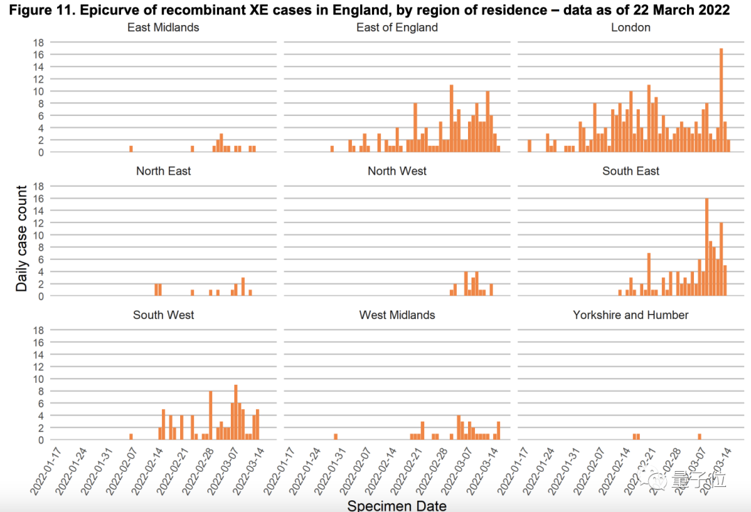 尽管数据显示,XE的确诊人数还不到英国已测序病例总数的1%,但英国卫生安全局已经通过1月15日到3月15日的数据计算出: