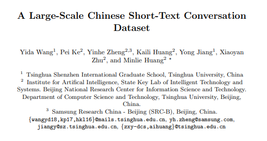 论文名称:《A Large-Scale Chinese Short-Text Conversation Dataset》