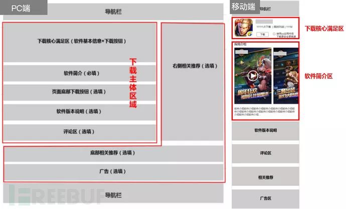 另外,该《规范》还给出了PC端和移动端下载站界面设计最优的选择方案。其中笔者注意到两点对于页面下载区的要求: