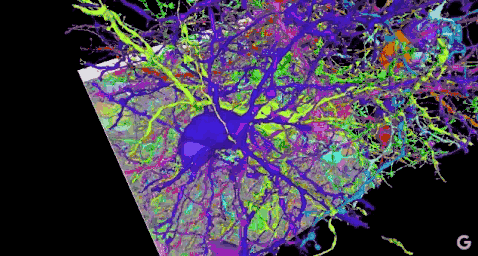 就像米开朗基罗工作室里的一块大理石一样,神经元的真实形态被困在所有周围空间和其他纠缠神经元的数据中。神经科学家必须手动查看图像,识别神经元切片,并指定计算机中的每一个变成3D模型。谷歌估计,每个样品都是只有1毫米的立方体,完成对全部样品的标注需要10万小时。然而他们所研发的AI经过七天训练,就能完成相同的任务。