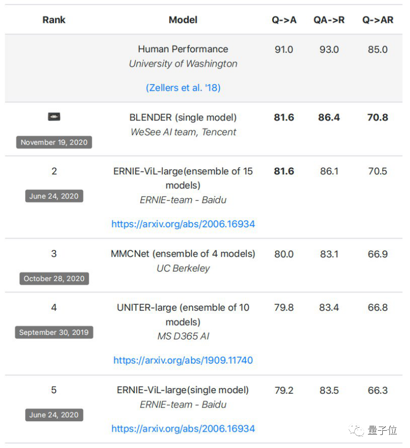 近日,视觉常识推理任务VCR(Visual Commonsense Reasoning)榜单又被刷新了。