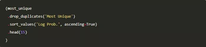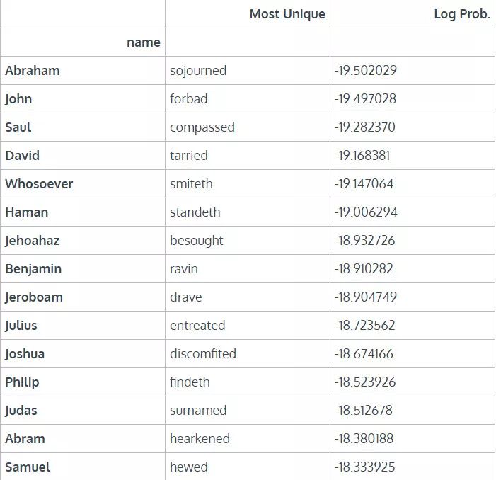 2)弄清楚每个人物最独特的行为。我们通过查找在英语文本中出现的概率最低的行为,来确定最独特的行为。