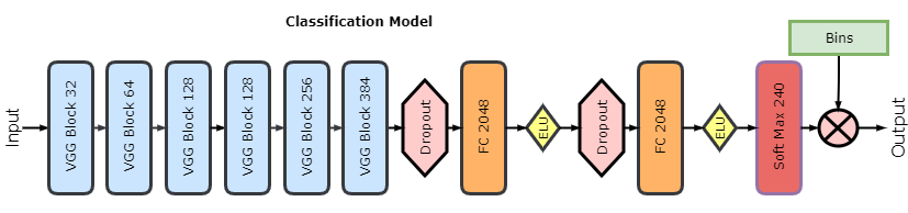 第二个模型是分类模型,该模型和回归模型很像,只是最后两层不同。一个主要的区别是分配给每个骨龄的类别不同。在数据集中,骨龄是以月为单位的,所以我们可以将其视为 240 类,将倒数第二层变成有 240 个输出的 softmax 层。这一层输出的是概率的向量,这里的类别概率真值范围在 [0,1] 区间内。最后一层中,概率向量与不同骨龄的向量 [1,…,239,240] 相乘。因此,该模型会输出骨龄的期望值。我们用和回归模型同样的训练方法训练了这个模型。