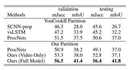 表6:不同模型在YouCook II数据集的Procedure Extraction任务上的实验结果