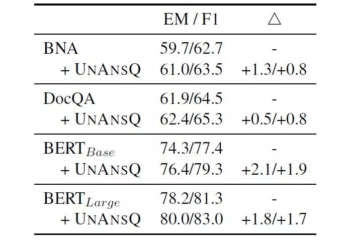 如表4所示,生成的问题作为增强数据能够提高机器阅读理解模型的表现。