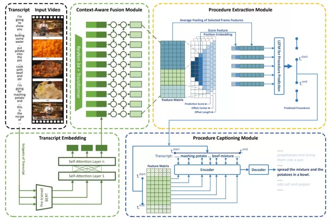 这项工作通过Azure Speech to Text云服务从视频中抽取旁白中Transcript。在YouCook II数据集上的Procedure Extraction和Procedure Captioning任务上都取得了最好的成绩。