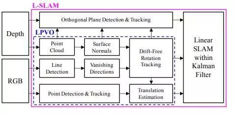 Linear RGB-D SLAM在线性卡尔曼滤波器框架内联合估计地图中的摄像机位置和平面地标,算法展示出了与其他最先进的SLAM方法相当的性能并且无需使用高代价的非线性优化方式。