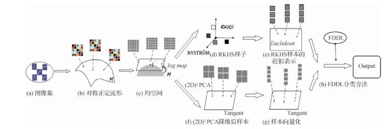 (2) 使用NYSTRÖM METHOD和(2D)2PCA (two-directional two-dimensional PCA)两种方法的降维处理,运用了Log-Euclidean kernel来得到切空间的样本的在再生和希尔伯特空间的表示形式,从而也达到了降维的效果。