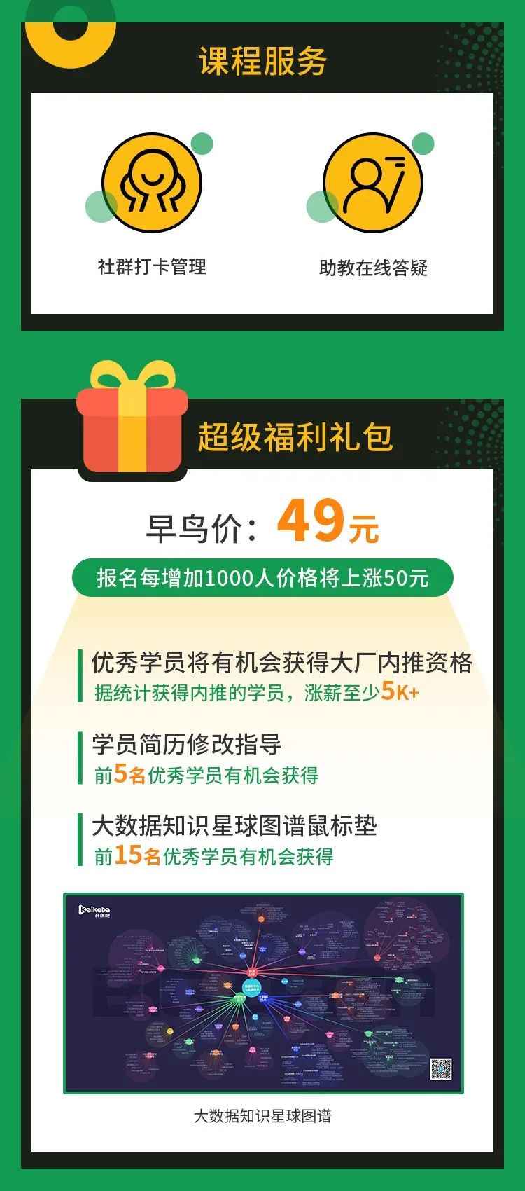 。本次训练营所授技能直指BATJ等大厂高阶数据分析岗,专门针对想真正能挖掘出有价值的数据来驱动业务增长并冲击大厂高薪的同学。