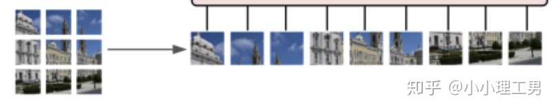 具体地,如果图片是 维的,用 大小的patch去分割图片可以得到 个patch,那么每个patch的shape就是 ,转化为向量后就是 维的向量,将 个patch reshape后的向量concat在一起就得到了一个 的二维矩阵,相当于NLP中输入transformer的词向量。