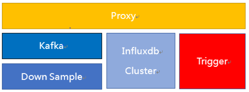 在这个架构中监控数据从 Proxy 进来分三路转发,第一路发送给 Influxdb 集群,确保无论发生任何故障,只要 Hickwall 恢复正常,用户就能立即看到线上系统的当前状态。