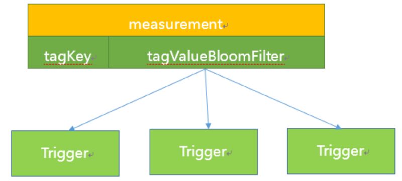 Hickwall 的实现思路是减治法,通过 Measurement 精确匹配减少下一步需要匹配的规则数量,通过 tagValue 的布隆过滤器判断是哪个 Trigger 节点需要的数据。Trigger 节点收到数据以后对数据点进行精确的匹配过滤,转发到具体的告警上下文中。