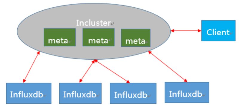 为了解决 Influxdb 的单点问题,我们研发了 Influxdb 的集群方案 Incluster,如下图。