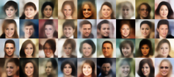 然后笔者的第一感觉是这样的:W!T!F! 这真的是 VAE 生成的效果?这还是我认识的 VAE 么?看来我对 VAE 的认识还是太肤浅了啊,以后再也不能说 VAE 生成的图像模糊了...