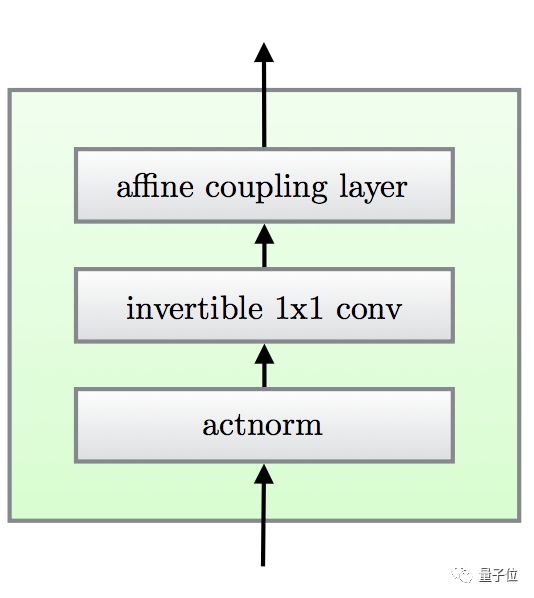 每一步 (绿框) ,都要从一个actnorm步骤开始,把激活神经元归一化 (Activation Normalization) 。