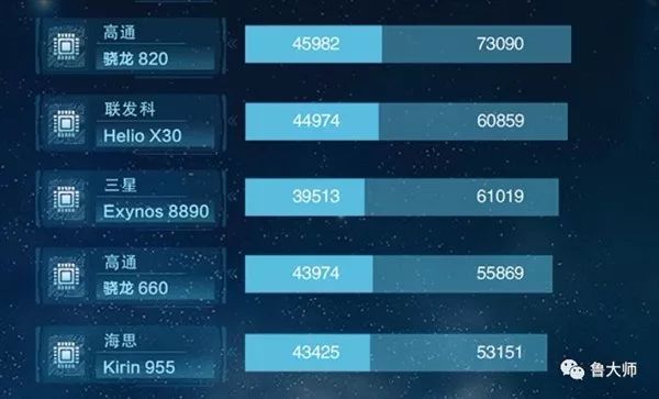 中端芯片上骁龙660非常惹眼,总分逼近10万,已经快赶上了三星Exynos 8890,也超过了麒麟955。