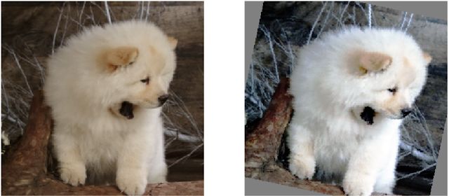 左:ImageNet数据集的原始图像。右:AutoAugment策略转换的相同图像。首先,最大化图像对比度,然后旋转图像。