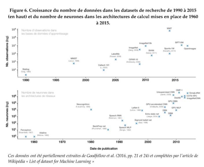 在这个工业前提下,新的数据科学的统计方法借用并开发了机器学习技术(贝叶斯,决策树,随机森林等)。但是,很显然,面对数据的量和异质性特点,更准确说是“验证”技巧,有必要使用更多的“试探性”和归纳的方法(杜克,1962年)。因此,在与行业接触中(最初是AT&T,然后是谷歌,Facebook和百度),神经网络的阴谋者将遇到问题:计算能力和数据上的,这些问题给他们机会去展示他们的机器的潜力,并将他们的观点加诸科学争议。他们将引出一个新的判准:当这些预测适用于“真实”世界时,预测是有效的。
