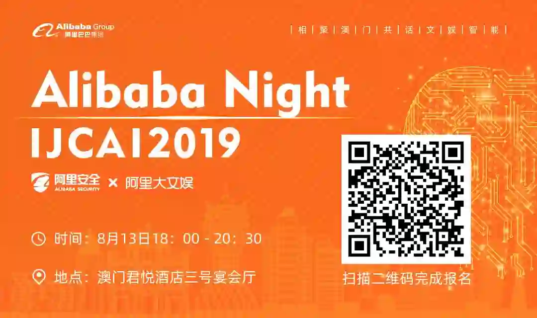 今年的 IJCAI 会议期间,阿里大文娱与阿里安全将在8.13晚携手举办“ IJCAI 阿里之夜——技术交流酒会”,扫描下方↓↓二维码,欢迎各位来共话AI。