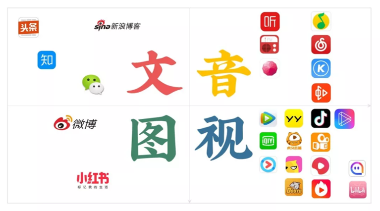 这两种载体、四种形式,构成了整个互联网的内容生态。而图文、音频、视频都已经有了头部平台占据,都已经名花有主。