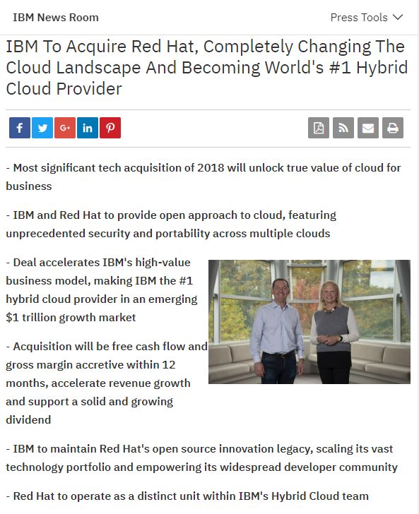 https://newsroom.ibm.com/2018-10-28-IBM-To-Acquire-Red-Hat-Completely-Changing-The-Cloud-Landscape-And-Becoming-Worlds-1-Hybrid-Cloud-Provider