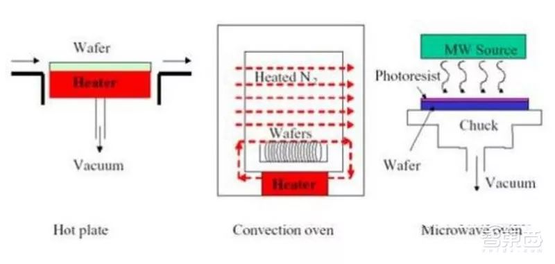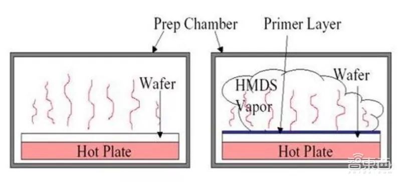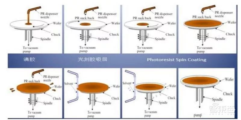▲IC 光刻工艺预烘和底胶涂覆示意图