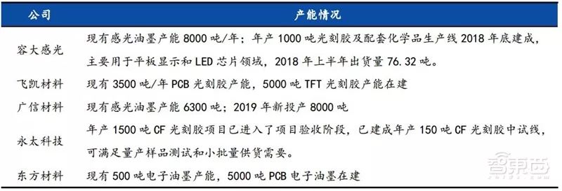 ▲国内 PCB/LCD 光刻胶上市公司产能