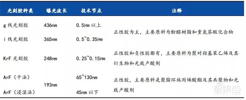 ▲不同尺寸晶圆制造中主要的光刻胶类型