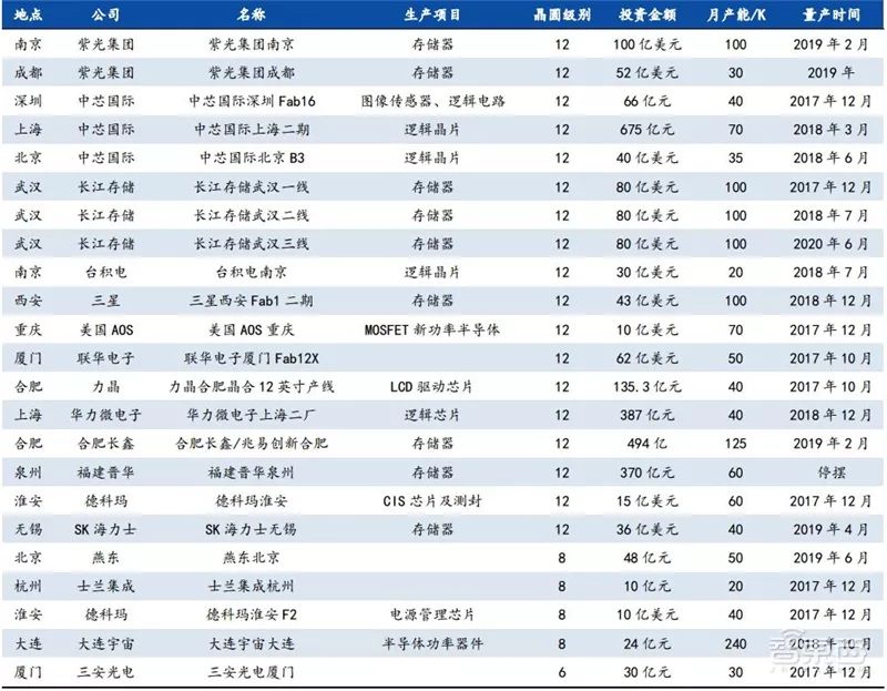 目前大陆晶圆制造领域的情况为 12 寸晶圆厂集中扩建, 8 寸厂订单满载, 6 寸厂面临转型。根据国际半导体协会(SEMI)所发布的近两年全球晶圆厂预测报告显示,2017 年到 2020 年的四年间,大陆预计将有 26 座新晶圆厂投产,整个投资计划占全球新建晶圆厂的 42%,成为全球新建投资最大的地区。整体来看目前大陆已投产12 寸线月产能达 46 万片(含外资、存储器),全球占比约 9%;已投产 8 寸线月产能达 66 万片(含外资),全球占比达 12.8%。 2016-2020 年新增 12 寸线规划产能在 100-110 万片/月。