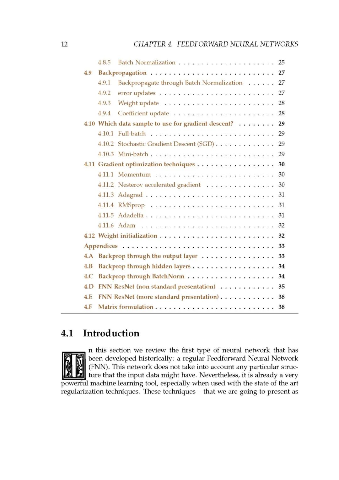 这篇书册以技术型的方式介绍了神经网络结构的三种最常见形式:前馈、卷积和循环。对于每个网络,它们的基本构建模块都有详细说明。然后,完整地推导出反向传播算法的前向传递和更新规则。