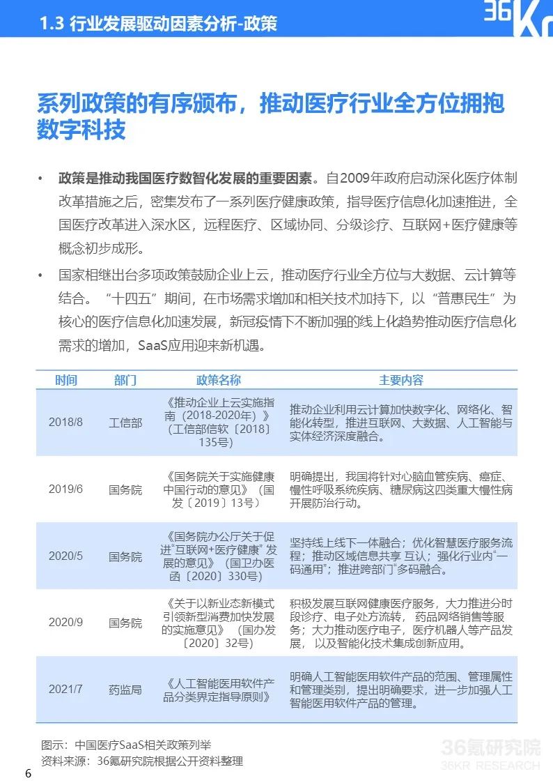 更多精彩内容,请关注“36氪研究”微信公众号。如想获取《2022年中国医疗SaaS行业研究报告》,点击文章底部【阅读原文】,提取码:02hw,或在36氪研究院微信公众号上回复“医疗SaaS”获取下载链接。
