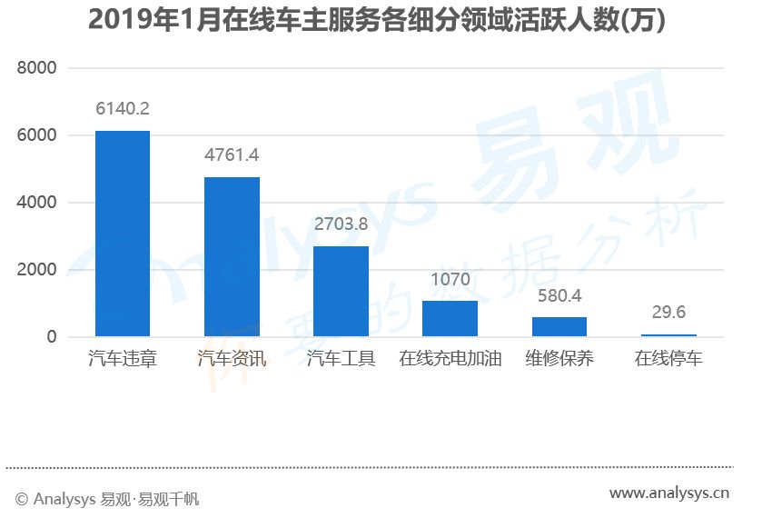 根据易观千帆,违章查询、汽车资讯、充电加油等车主服务细分市场活跃用户均保持在百万量级,表明车主用户在信息查询、车务代办、汽车消费等方面需求较大。