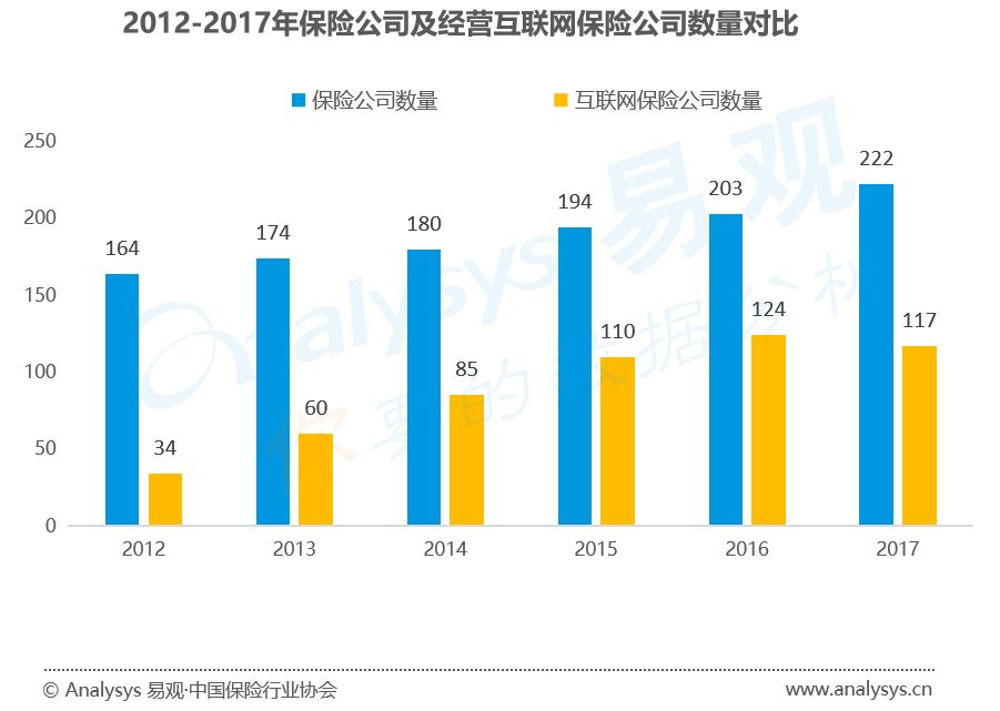 保险企业互联网参与度加深:2017年经营互联网保险业务的保险公司数量增至131家,保险公司推出经过备案的互联网渠道销售保险产品数量大幅增加,保险企业对互联网保险市场的深度进一步提升(数据来源:中国保险行业协会)。