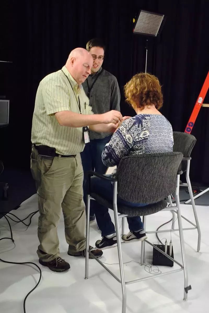 我们去了博物馆的演播室。在那里,我要拍摄一个我们随意聊天的视频,把它放在我们机构介绍我即将发表的一篇论文的新闻稿里。我们用到了一些视觉辅助工具,包括我所研究的蚂蚁的图片,蚂蚁用来相互交流的化学物质的图表。在三个摄像头面前,我开始解释我基于表皮碳氢化合物研究三种锯针蚁(Odontomachus)的生育力和两性异形的结果。或者,用更通俗的话来说,蚂蚁如何使用独特的化学语言来进行有关性和生育能力的交流。