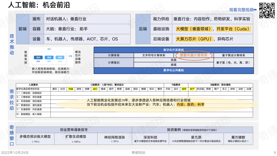 今天分享的主题是《在技术驱动创新的无尽前沿把握好机会》,我们主要分享奇绩的世界观、奇绩分析技术驱动创新趋势的方法和奇绩看到的创新信号。