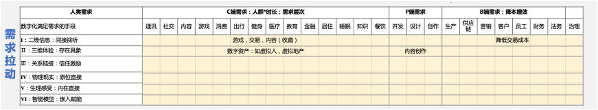 如果我们没有数字化的能力去满足这类需求,那么人类会通过三种活动去满足这类需求。