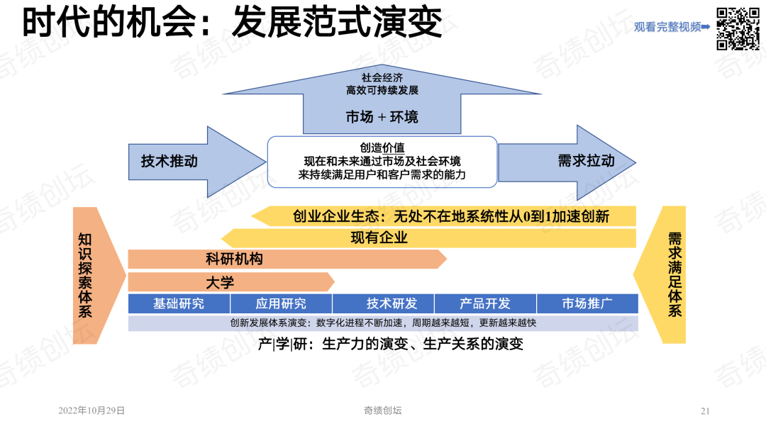 在技术驱动创新作为直接产能的情况下,创新发展的速度也越来越快,机会也非常多,这非常特殊,本质原因是范式变化。
