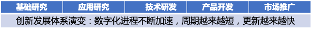 但有了数字化之后,创新体系就发生了演变,每一个阶段的周期越来越短,更新速度越来越快。
