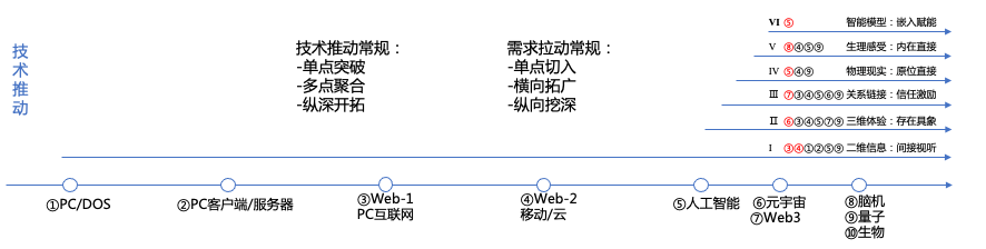 新技术一般都是先单点切入需求。举个例子,元宇宙就在找一个方向突破,接着会往横向的应用场景拓宽,满足更多的需求,拓展到了一定的宽度之后,才能纵向渗透更深的需求。新技术都是按照这样的常规满足需求的。